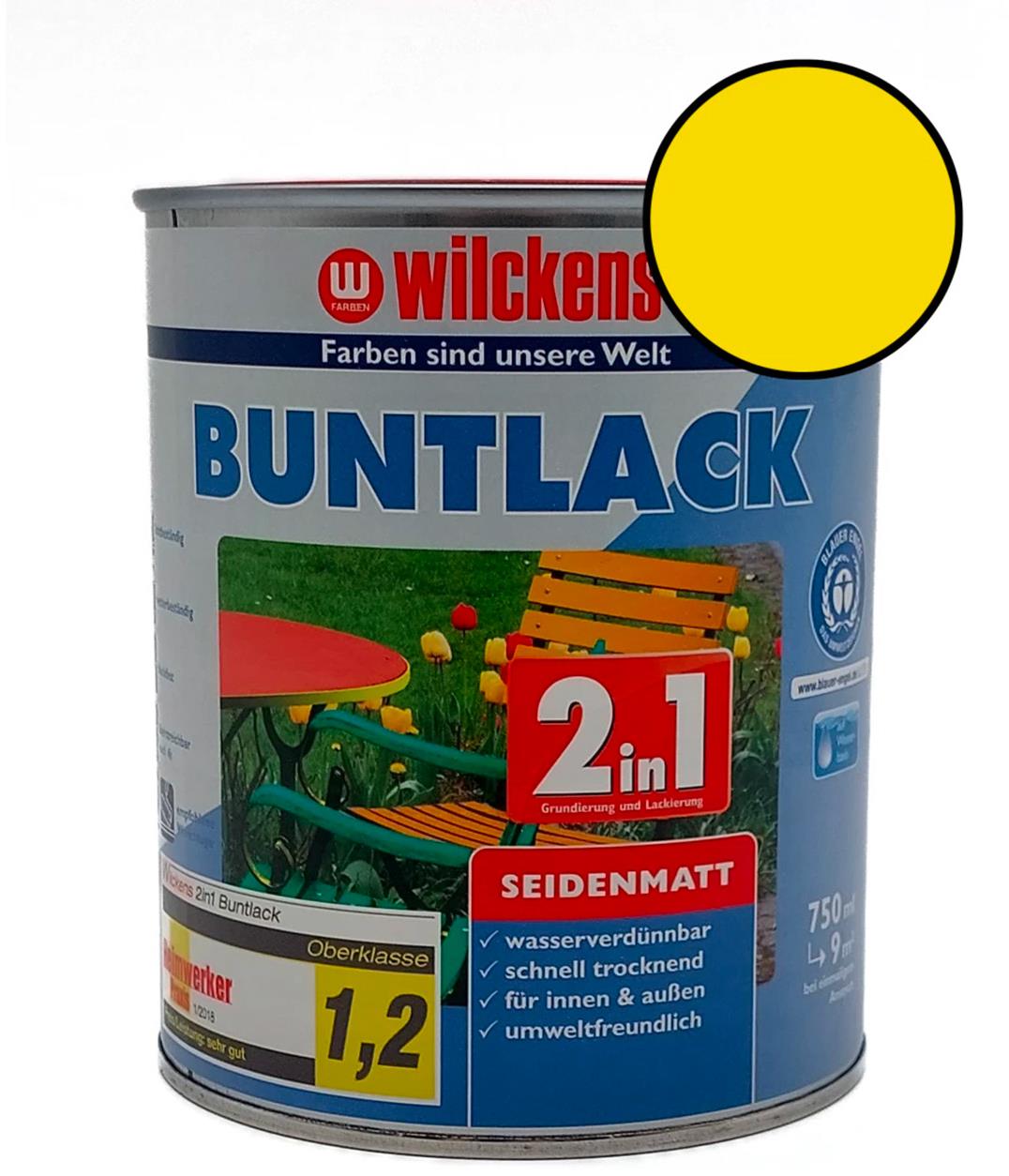 Univerzálna farba – žltá, základová, vodou riediteľná, matná, na použitie v interiéroch aj vonku, vhodná na drevo, kov a PVC, riedenie vodou, aplikácia valčekom alebo štetcom, pokrytie plochy 9 m², približná doba schnutia 4 h, objem 0,75 l Kľúčové prednosti náteru Wilckens Vodou riediteľná univerzálna akrylátová matná farba 2 v 1 žltá, WI.12412100050 Náter Wilckens ponúka ochranu povrchov proti poškodeniu a zároveň vylepšuje ich vzhľad