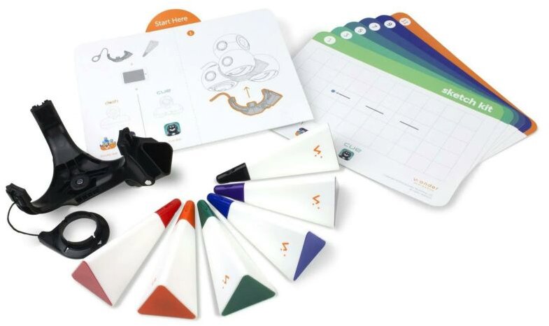 Príslušenstvo pre robot – Dash, deti môžu pomocou bezplatnej aplikácie Blockly alebo Wonder naprogramovať pohyb robota tak, aby precízne kreslil puzzle, bludisko, geometrické tvary či umelecké motívy, snap‑on dizajn umožňuje rýchle nasadenie bez nástrojov Rozšírte možnosti svojho robota Dash alebo Cue pomocou Sketch Kitu od Wonder Workshop. Tvorivý STEAM doplnok umožní robotovi držať dva farebné fixky a kresliť jedinečné tvary, vzory a obrázky. Deti mô