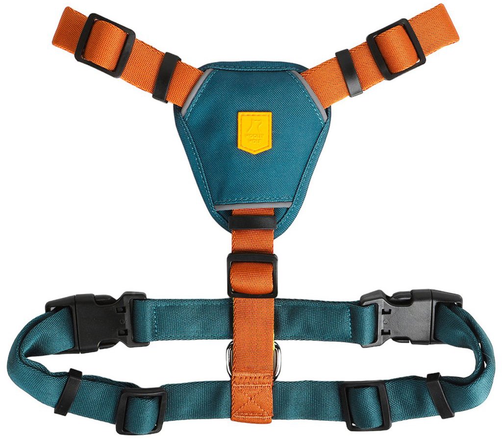 Postroj pre psa, typ H a nastaviteľný, na obvod hrudníka od 56 cm do 78 cm, šírka popruhu: 4 cm, materiál: polyester, plast a recyklovaný materiál, modrá, zelená a oranžová farba, pre veľké plemená Nechcete svojho psa alebo mačku upínať bežným obojkom? V takom prípade by ste mali zvážiť kúpu postroja pre psa a mačku Woolly Wolf. Woolly Wolf Postroj Lime Mix M je tzv. postroj typu H, telo obopína