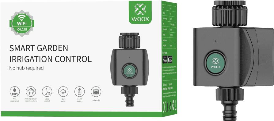 Inteligentný zavlažovač – ovláda zavlažovanie záhrady na diaľku, bez centrálnej jednotky, pripojenie cez WiFi, hlasové ovládanie pomocou Google Home / Amazon Alexa, napájanie AA batériami Inteligentný ventil Woox R4238 vám umožní ovládať zavlažovanie záhrady na diaľku. Na svoje fungovanie nepotrebuje centrálnu jednotku, pripája sa prostredníctvom WiFi. Do svojho smart zariadenia si sta