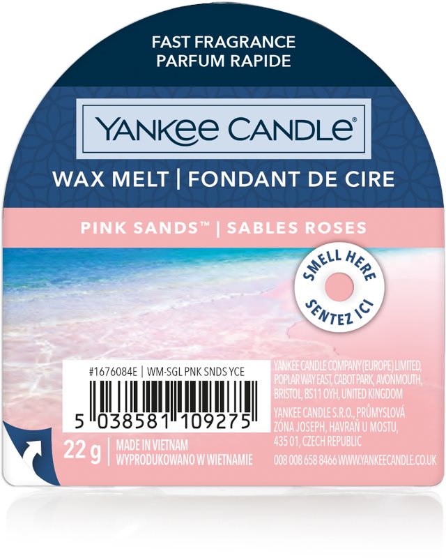 Vonný vosk – svieža vôňa, materiál parafín, hmotnosť 22 g Rozpustený vonný vosk YANKEE CANDLE Pink Sands prevonia veľmi rýchlo celý byt. Môžete ho tiež tuhý vložiť do malých priestorov a tešiť sa zo sviežosti dlhé týždne. Pre maximálny vonný efekt rozpustite