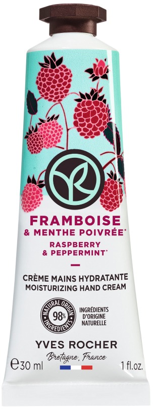 Krém na ruky – hydratačný, vyživujúci a zjemňujúci, vegánsky, na suchú pokožku, na suchú pokožku, bez farbív, bez parabénu a bez silikónu, na každodenné použitie, aktívne látky bambucké maslo, glycerín a slnečnicový olej, malinová vôňa, objem 30 ml Krém na ruky YVES ROCHER je určený na suchú pokožku rúk. Krém sa sviežou ovocnou vôňou jemnestará a vyživuje. Jemná textúra sa rýchlo vsiakne a zanechá ruky hydratované. Neobsahuje silikóny ani parab