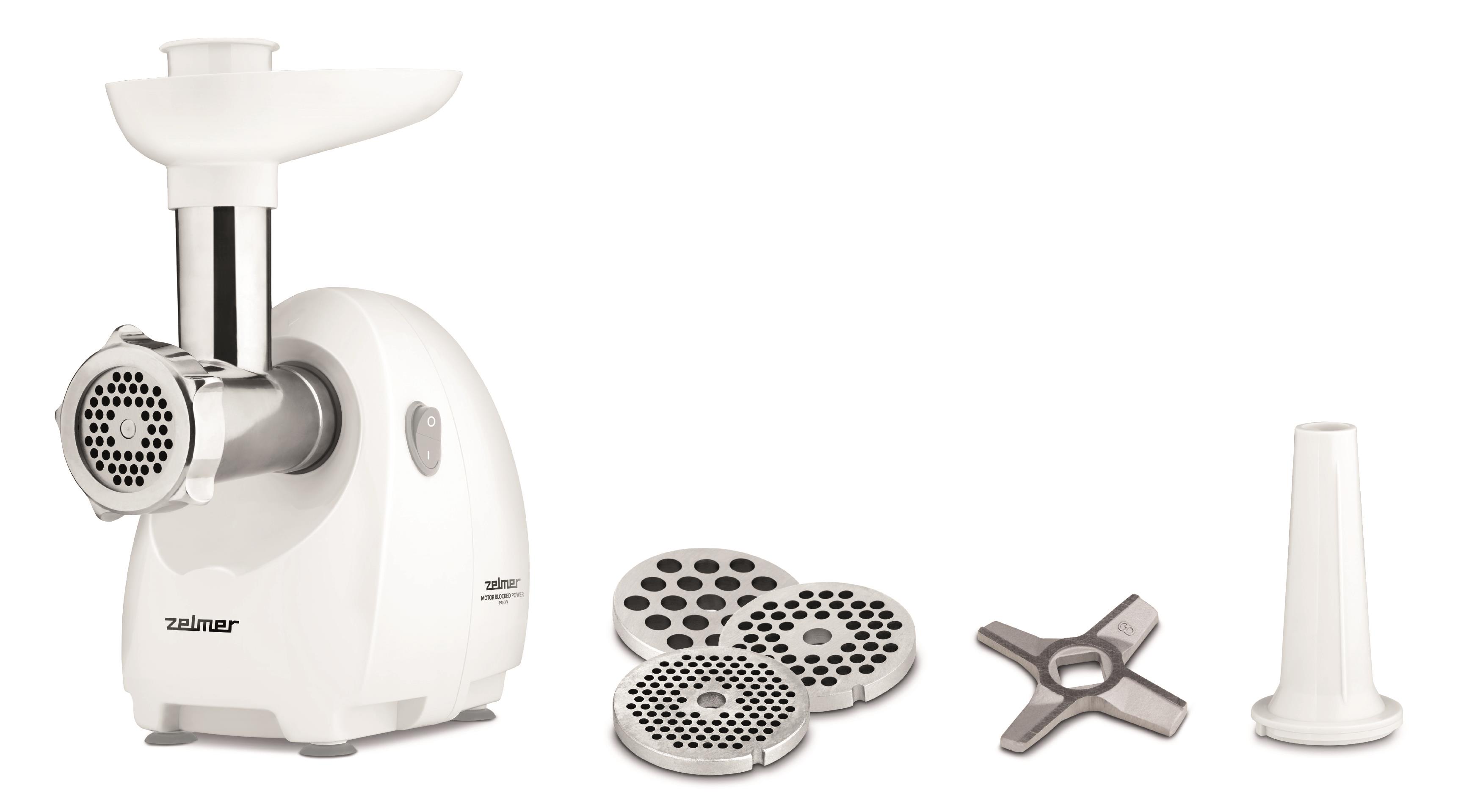 Mlynček na mäso – elektrický, príkon 1900 W, veľký plniaci otvor, gumové nožičky a s obojstranným nožom, na plnenie párkov a klobás a mletie, 1 rýchlosť, rýchlosť spracovania mäsa 2,5 kg/min, hrubosť mletia 2,7, 4 a 8 mm, vtláčadlo, adaptér na klobásy a mlecie doštičky v balení, veľkosť mlynčeka 8, materiál plast a kov, rozmery 25 × 24,5 × 28 cm (V׊×H), hmotnosť 2,765 kg, biela farba Mlynček na mäso Zelmer ZMM4080B je skvelý pomocník do domácnosti, ktorý vám obratne pomôže so spracovaním mäsa. Vďaka vysokému výkonu 1900 W a rýchlosti spracovania mäsa 2,5 kg/min si môžete behom chv