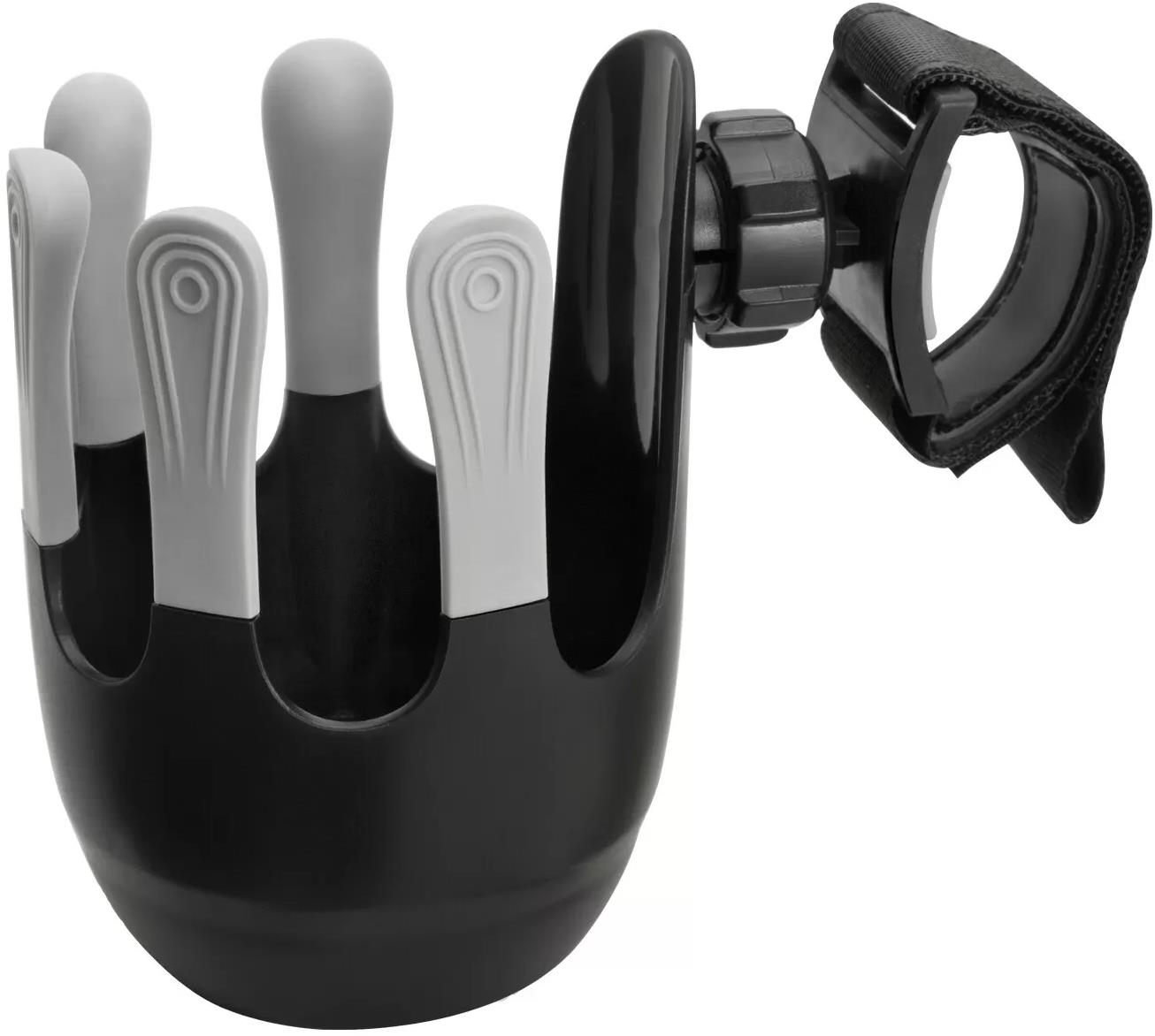 Držiak na kočík – vhodný na nápoje, protišmyková úprava a nastaviteľný uhol, prichytenie na suchý zips, materiál plast, čierna farba