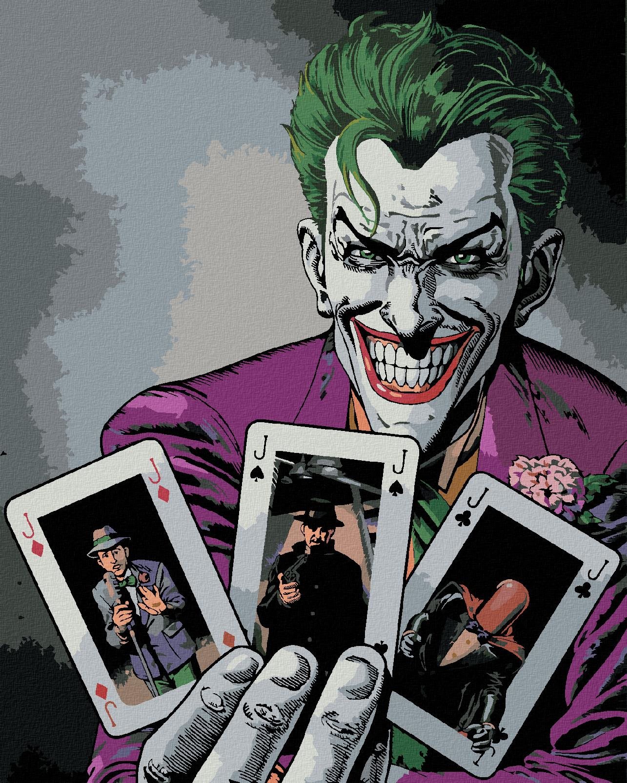 Maľovanie podľa čísel –, plátno, súprava štetcov, farby a vymaľovaný vzor súčasťou balenia, rozmery 50 × 40 cm (V׊) Kľúčové vlastnosti maľovania podľa čísel Zuty – Joker a karty (Batman), 40 × 50 cm, bez…