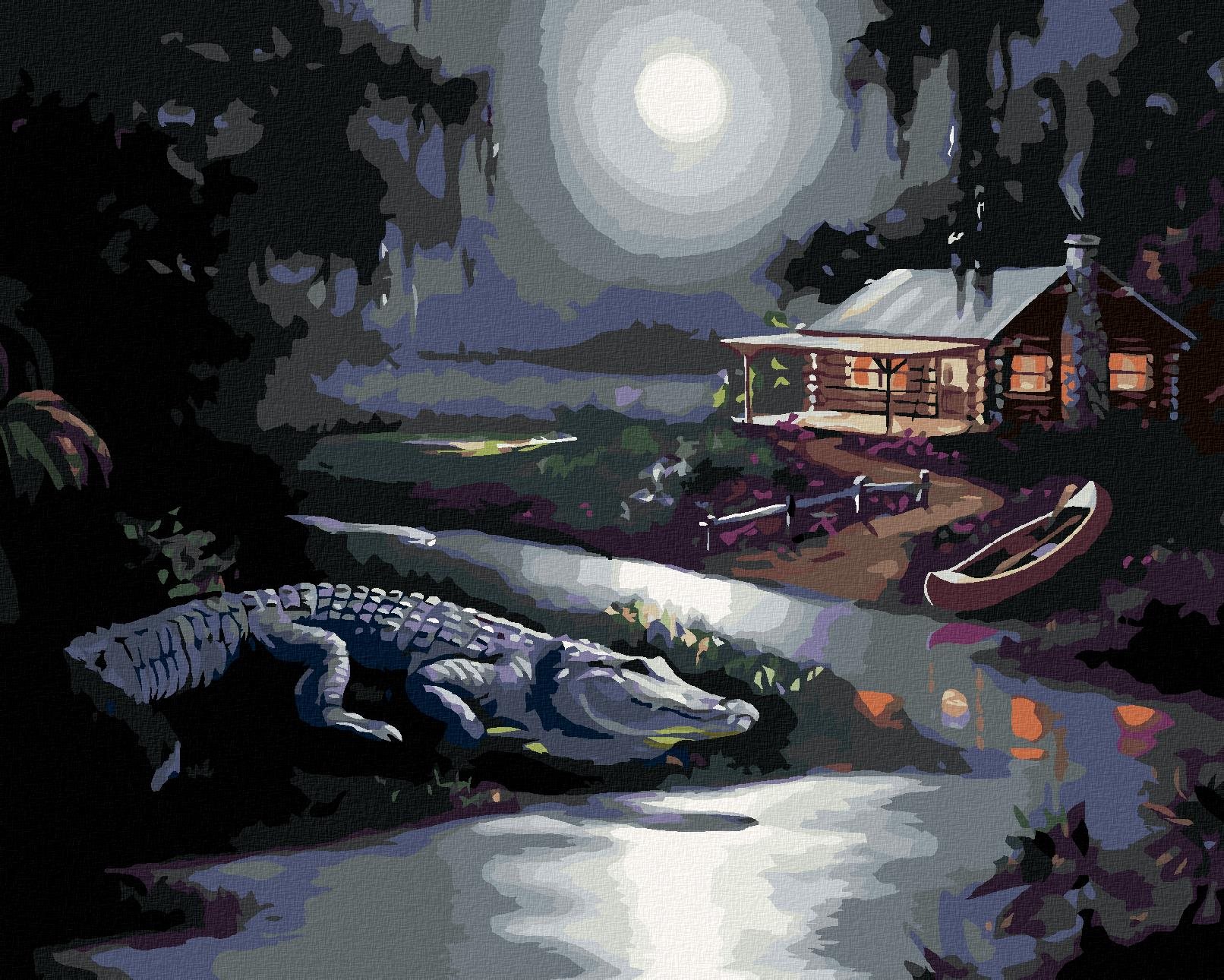 63,90 €Zuty – Maľovanie Podľa Čísel – Aligátor Na Brehu A Chata Za Splnu (D. Rusty Rust), 80 × 100 cm, Plátno + Rám