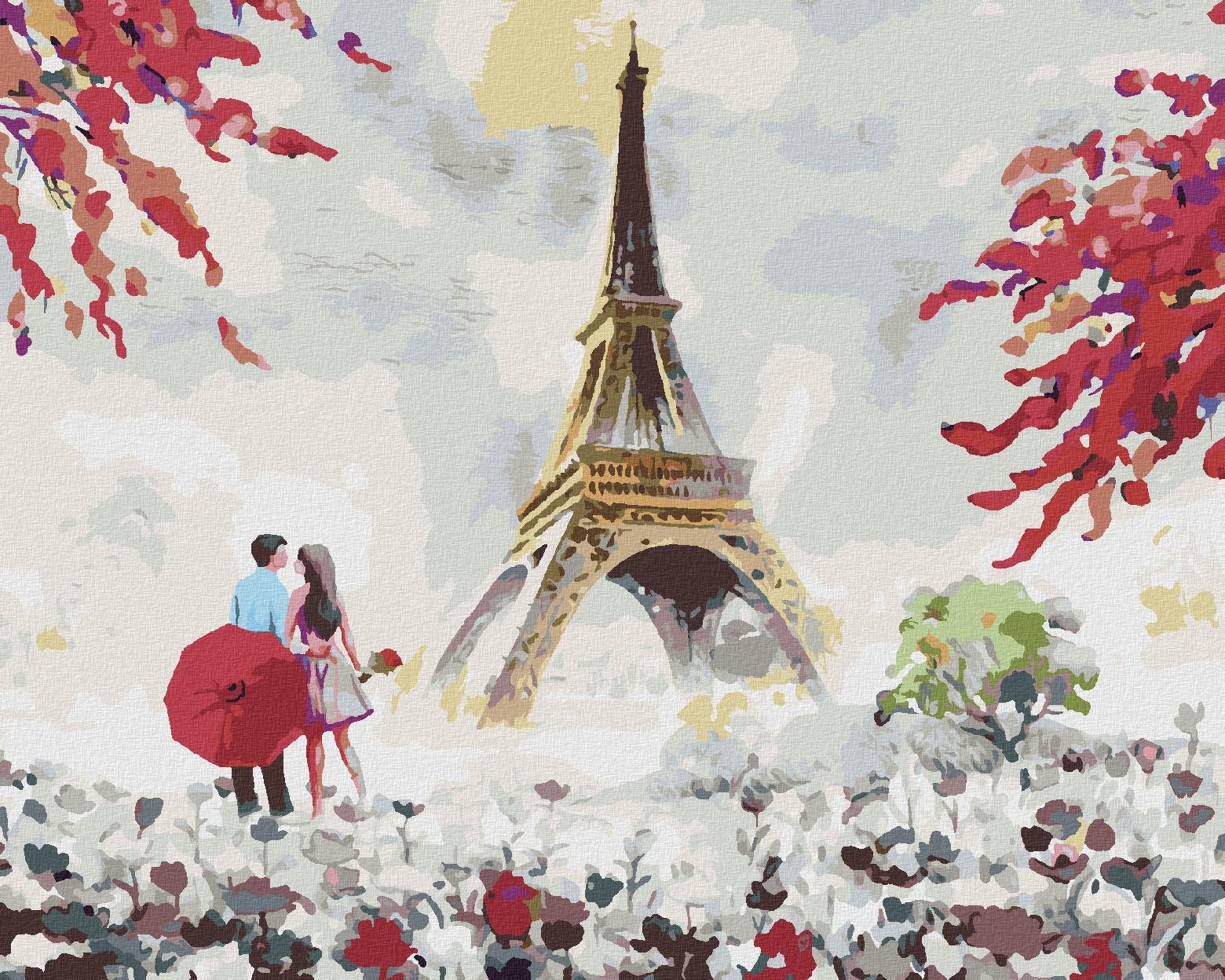 61,78 €Zuty – Maľovanie Podľa Čísel – Eiffelova Veža A Žena S Kvetinami, 80 × 100 cm, Plátno + Rám