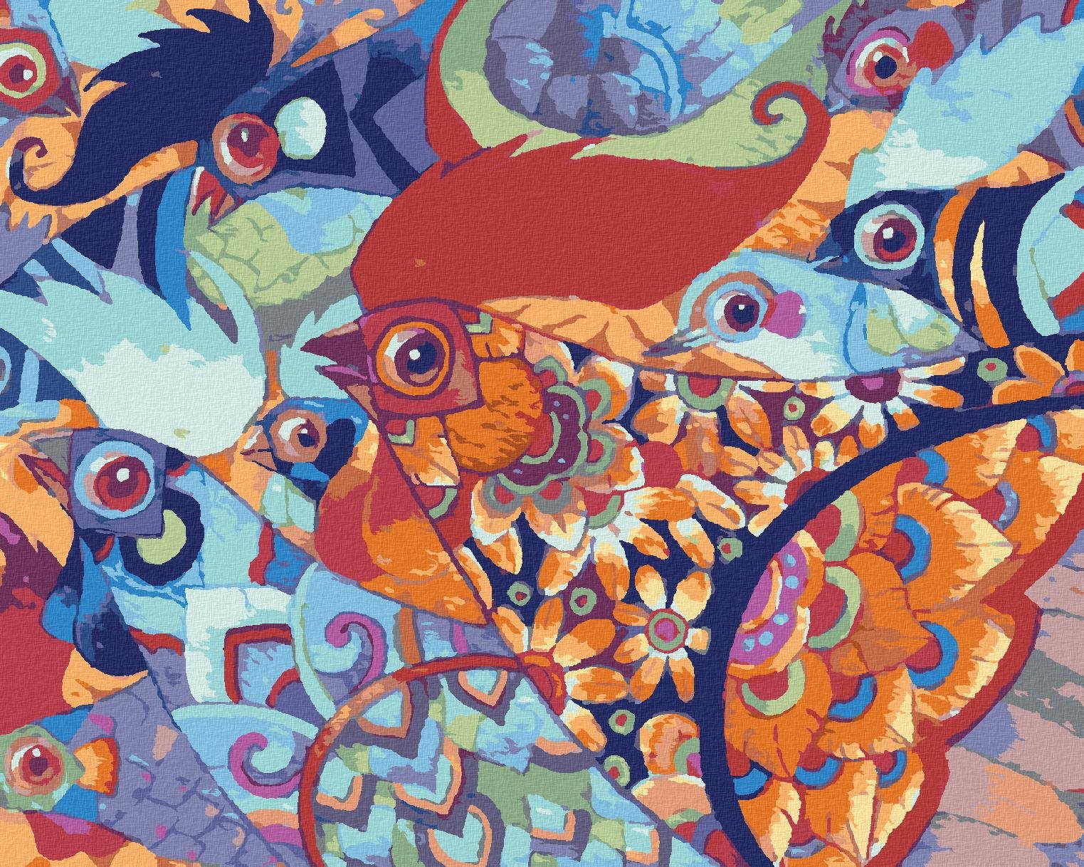 61,78 €Zuty – Maľovanie Podľa Čísel – Farebné Maľované Sliepky, 80 × 100 cm, Plátno