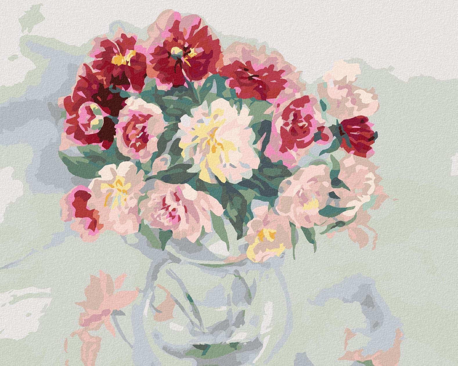 Zuty – Maľovanie Podľa Čísel – Farebné Pivonky Vo Váze, 40 × 50 cm, Plátno