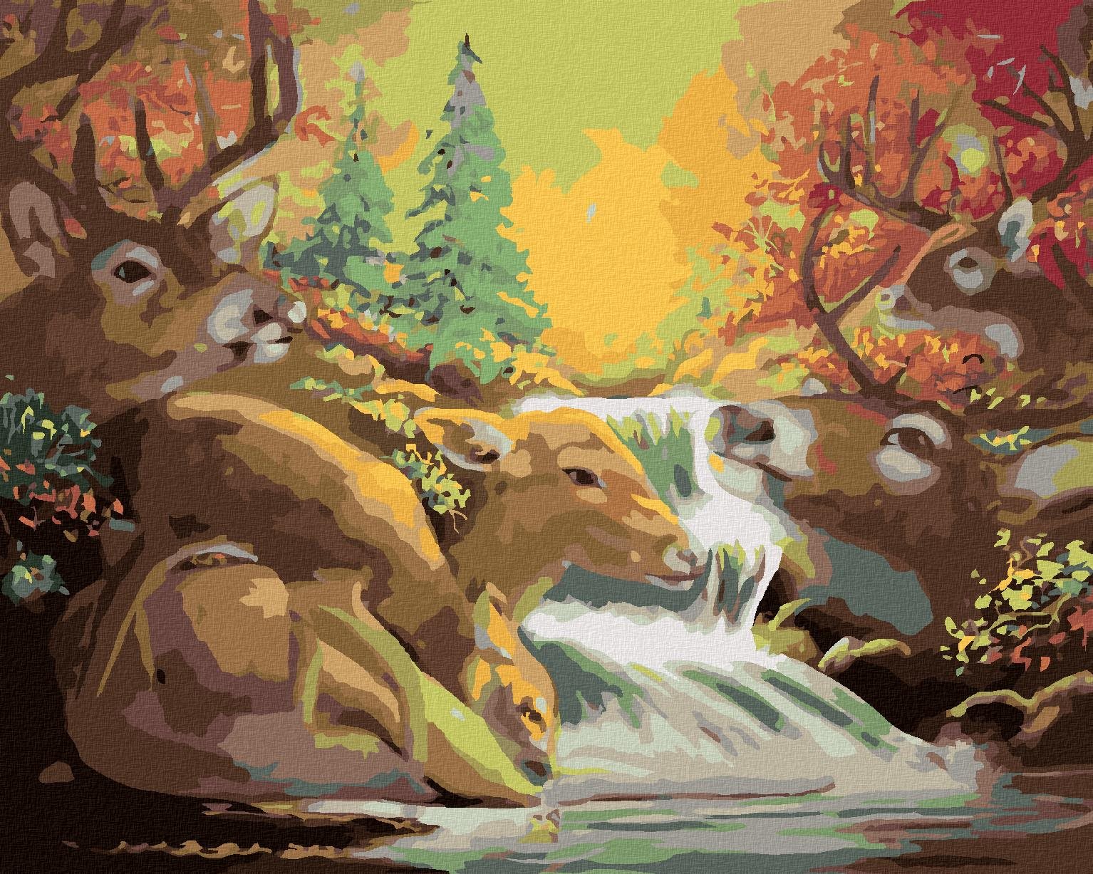 61,78 €Zuty – Maľovanie podľa čísel – Jeleň a vodopád (D. Rusty Rust), 40 × 50 cm, plátno