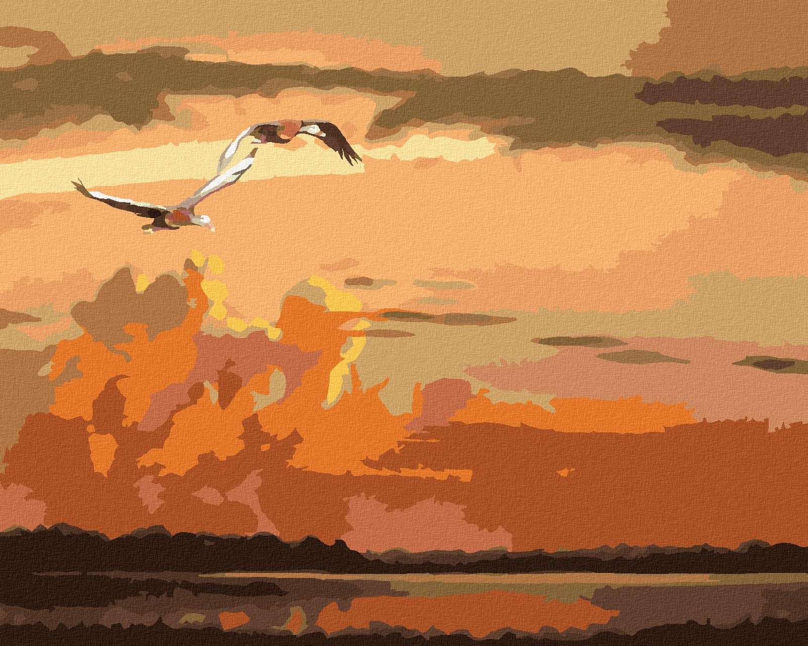 Zuty – Maľovanie Podľa Čísel – Letiace Kačice A Západ Slnka (D. Rusty Rust), 40 × 50 cm, Plátno