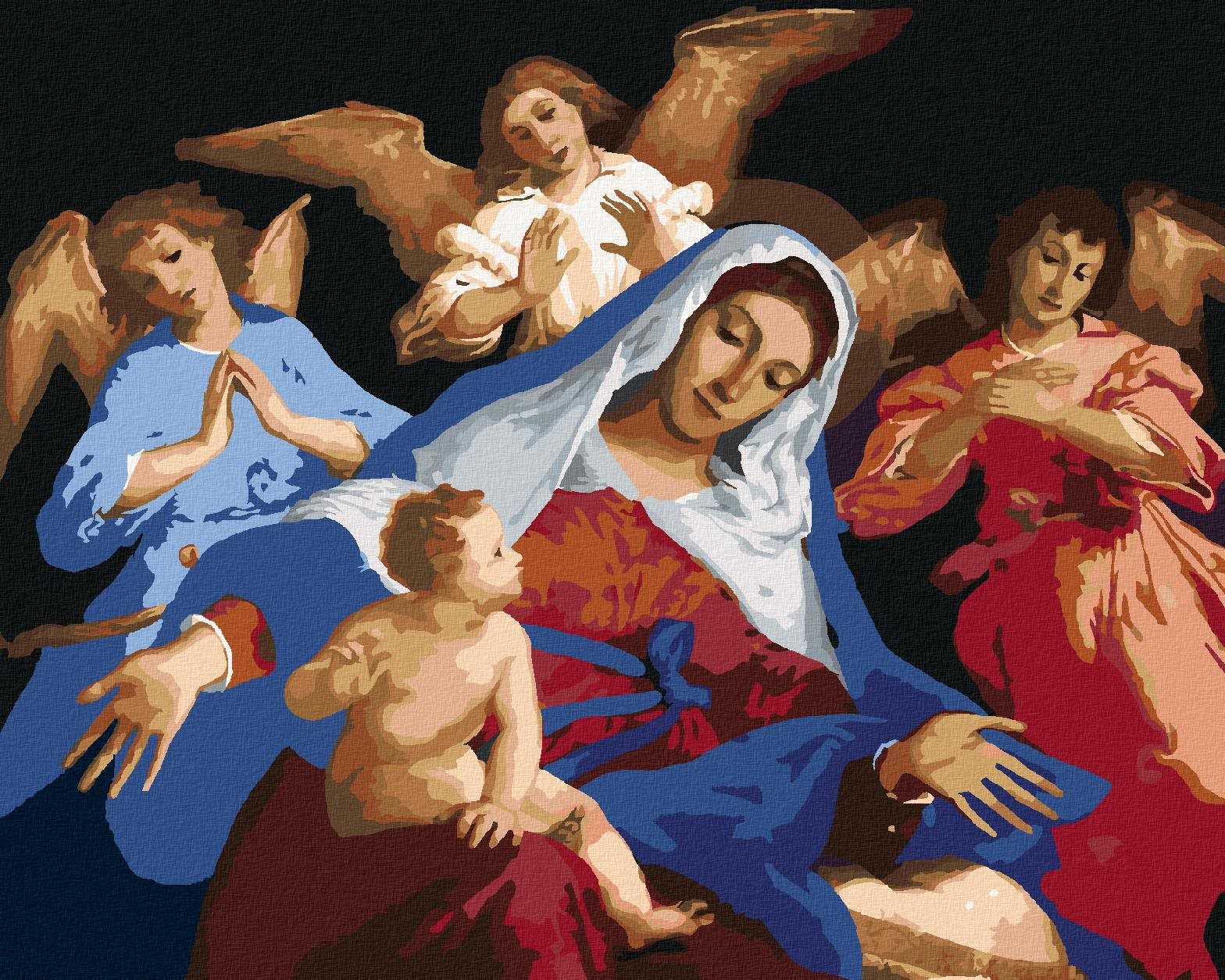 Maľovanie podľa čísel – tematika náboženstvo, plátno, súprava štetcov, farby a vymaľovaný vzor súčasťou balenia, s rámom a s napnutím plátna, rozmery 100 × 80 cm (V׊) Kľúčové vlastnosti maľovania podľa čísel Zuty – Maľovanie podľa čísel – Mária a Ježiš a anjeli, 80 × 100 cm, plátno + rám Maľovanie podľa čísel sa hodí pre všetkých tvorivých jedincov Materiálom plátn