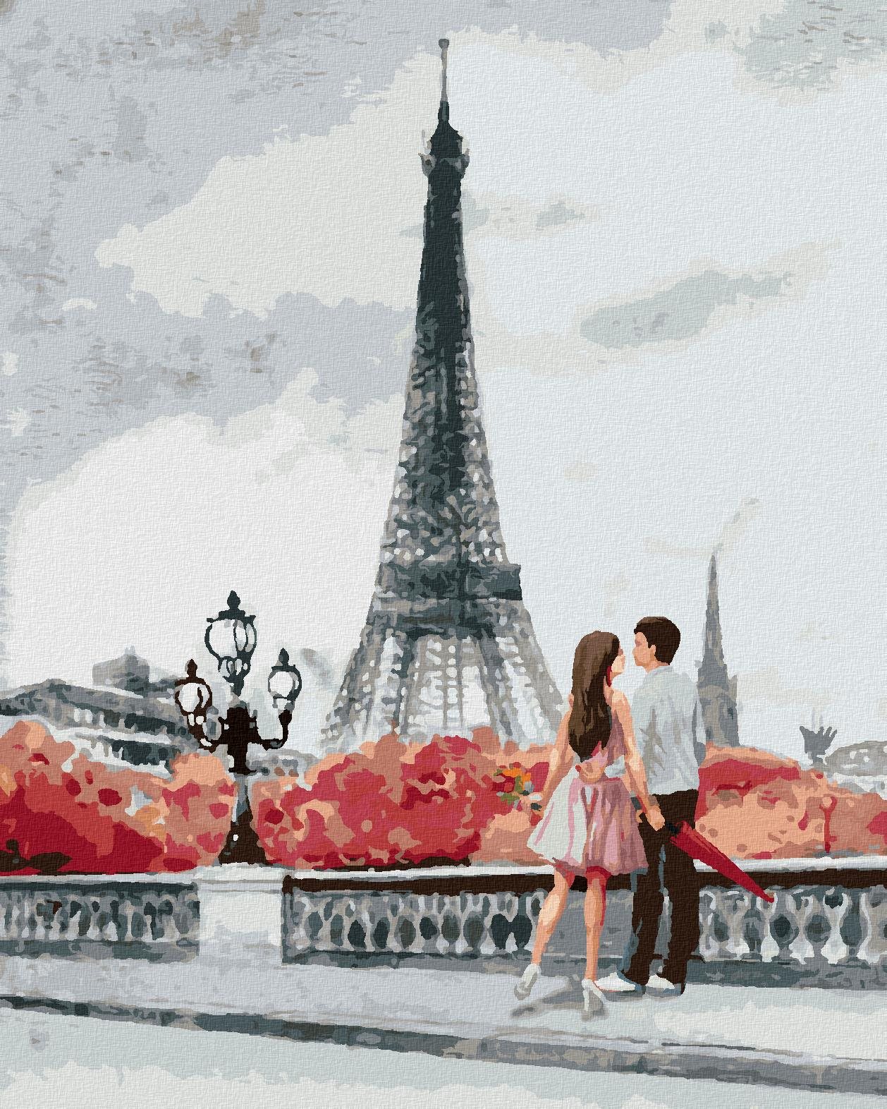 72,18 €Zuty – Maľovanie Podľa Čísel – Mladý Pár A Eiffelova Veža, 80 × 100 cm, Plátno
