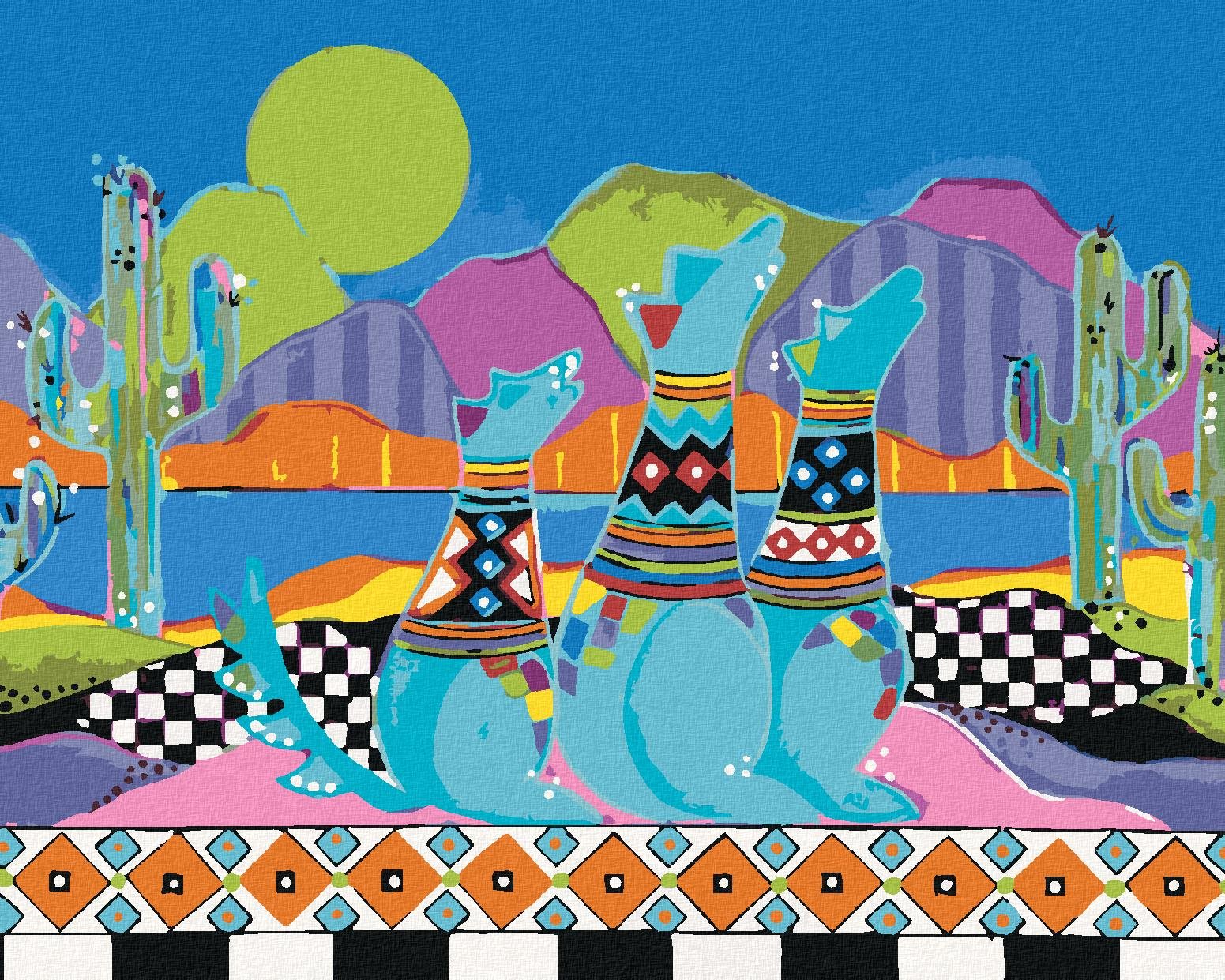 50,01 €Zuty – Maľovanie Podľa Čísel – Vyjúce Psy Na Púšti (Jonna James), 80 × 100 cm, Plátno