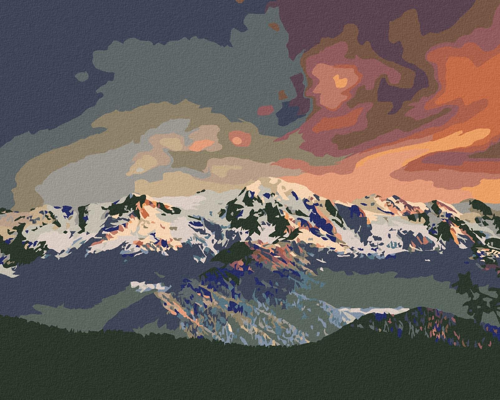 30,48 €Zuty – Maľovanie Podľa Čísel – Zasnežené Pohorie A Borovicový Les, 40 × 50 cm, Plátno + Rám