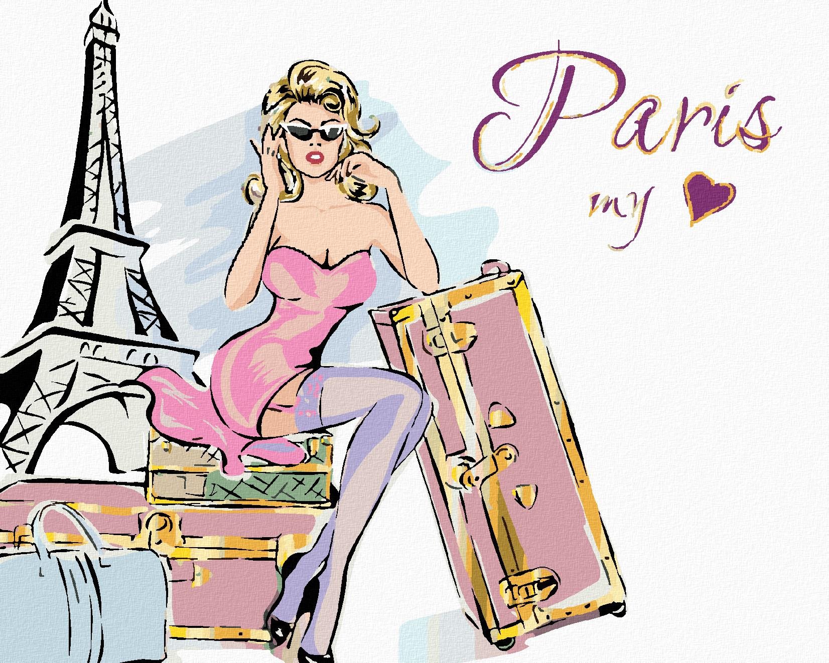 16,22 €Zuty – Maľovanie Podľa Čísel – Žena S Kuframi Pri Eiffelovej Veži, 80 × 100 cm, Plátno