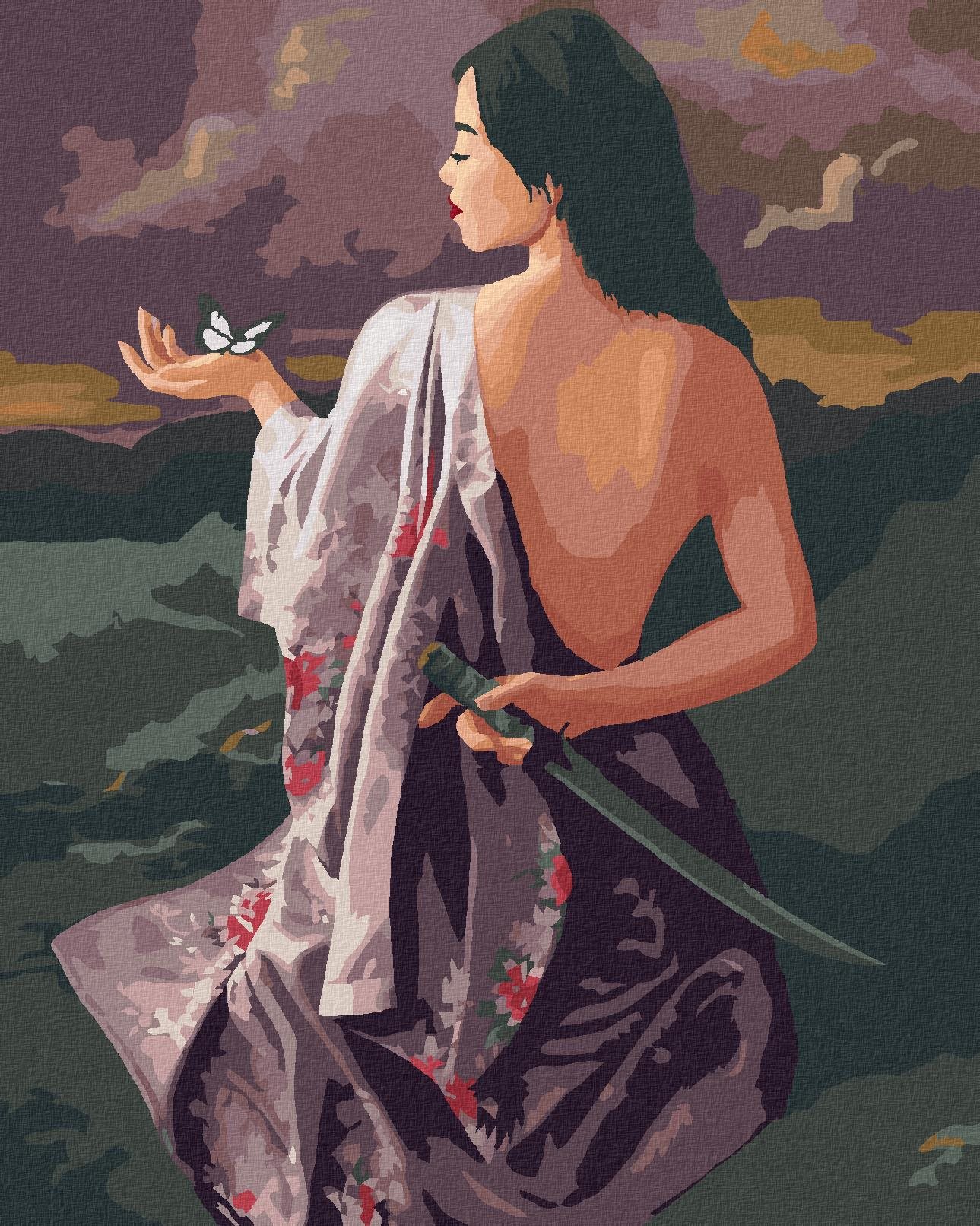 5,97 €Zuty – Maľovanie podľa čísel – Žena v ružovom kvetovanom hodvábe s dýkou a motýľ (Pieter Wagemans), 40 × 50 cm, plátno